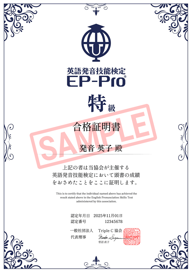 日本国内にお住まいの方に限りますが、合格者のみなさまに無料でA4サイズの合格証明書を発行させていただきます。